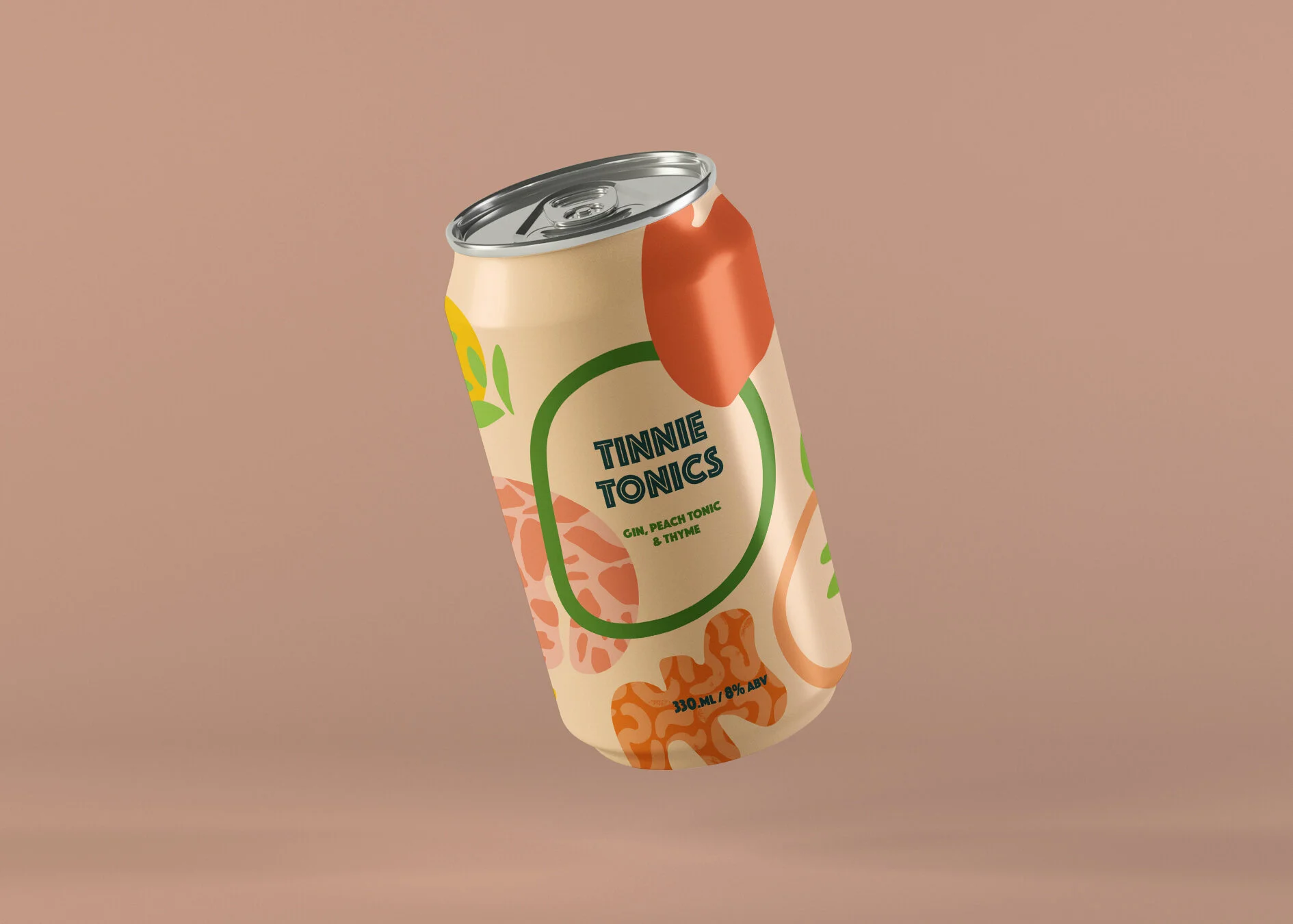 Visual identity, packaging design and art direction to create the brand Tinnie Tonics. Low sugar, low carb RTDs. All Natural flavours, made with natural sugars and fruit extracts. These Gin mixes are the perfect addition to any summer party, picnic or bbq. The name Tinnie tonics comes from the Australian slag “Tinnie“ that means a can of beer or alcohol.